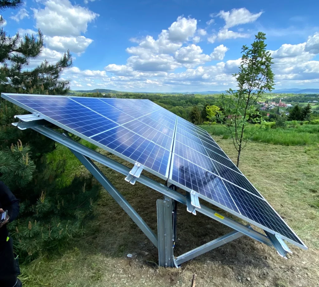– Mechanizm śledzenia: Panele są montowane na ruchomych stelażach, które podążają za ruchem słońca w ciągu dnia, co zwiększa wydajność instalacji o 20-30%.